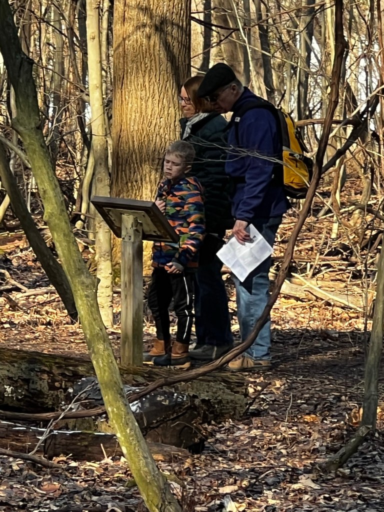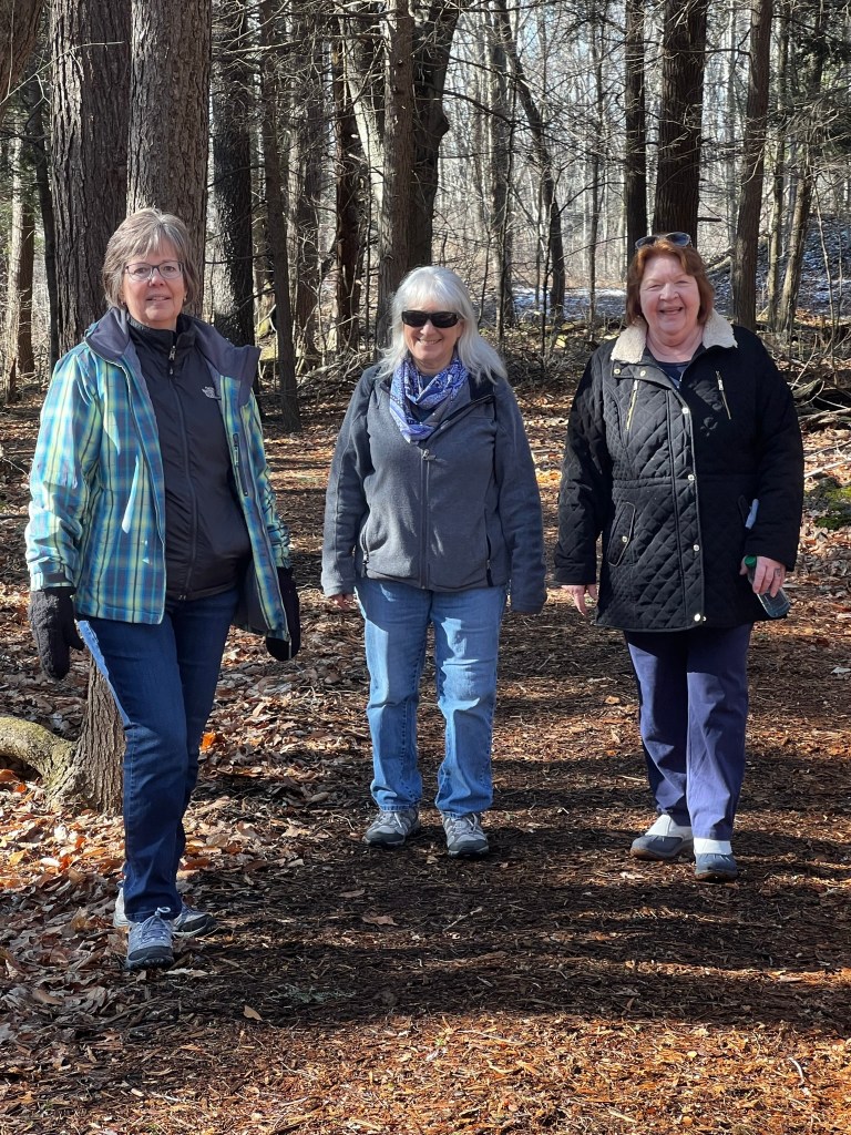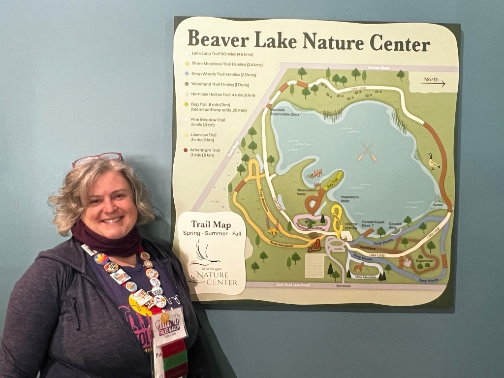 The pavilion does not have electricity, but has grills, picnic tables, trash cans and nearby restrooms. Cars can be parked on the edge of the ball field just across the road. Besides the nature trails, visitors can enjoy fishing, boating, the wading pool and more. The trails throughout the park are mostly paved or hard-packed dirt. There could be a couple of muddy spots if we have a lot of rain prior to our Folksmarch. Well behaved, leashed dogs are allowed with clean-up from the owner, of course.